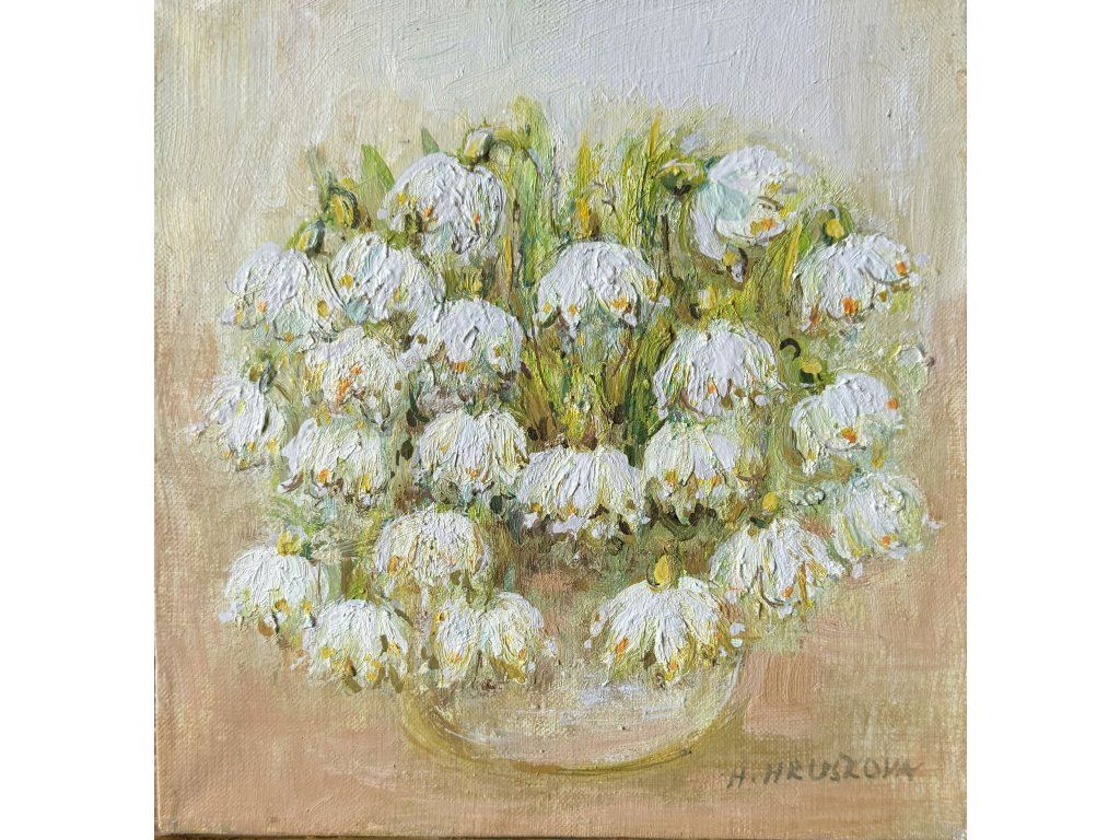 Technika: olejomalba na plátně Rozměr: 25 × 25 cm Autor: Helena Hrušková Štefková, akademická malířka Stav: originál, podepsáno autorkou, certifikát pravosti přiložen Rám: volitelně bílý nebo zlatý (+500 Kč)