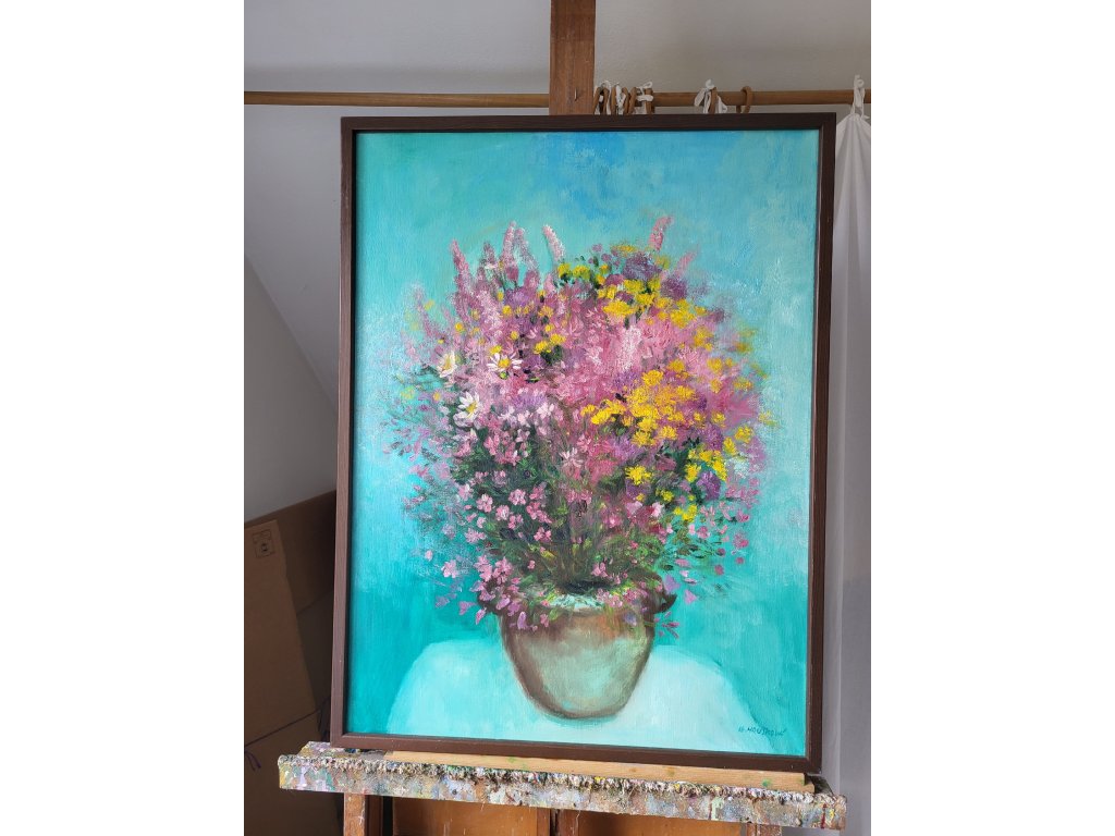 Horská kytice na modrém pozadíMožno zakoupit rám viz foto (800Kč)