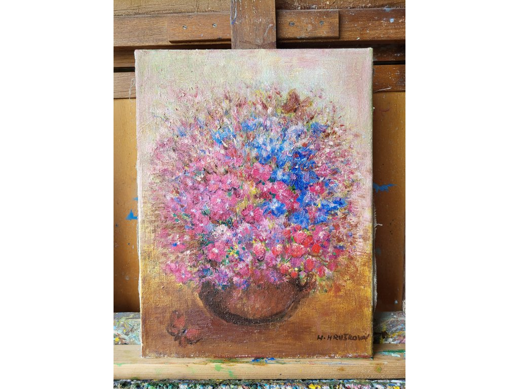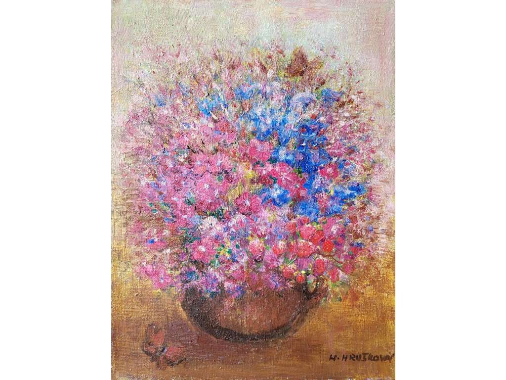 Kytička s hvozdíky, zvonky, jahůdkami a motýly