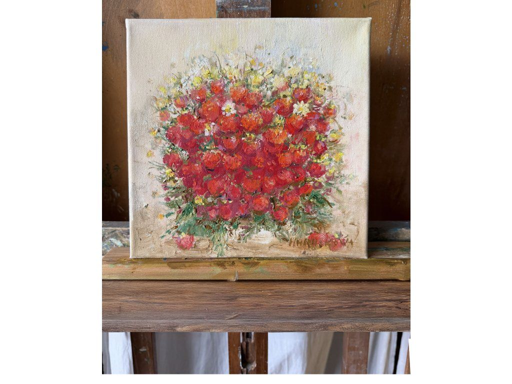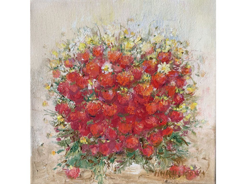 Technika: olejomalba na plátně Rozměr: 25 × 25 cm Autor: Helena Hrušková Štefková, akademická malířka Stav: originál, podepsáno autorkou, certifikát pravosti přiložen Rám: volitelně bílý nebo zlatý (+500 Kč)
