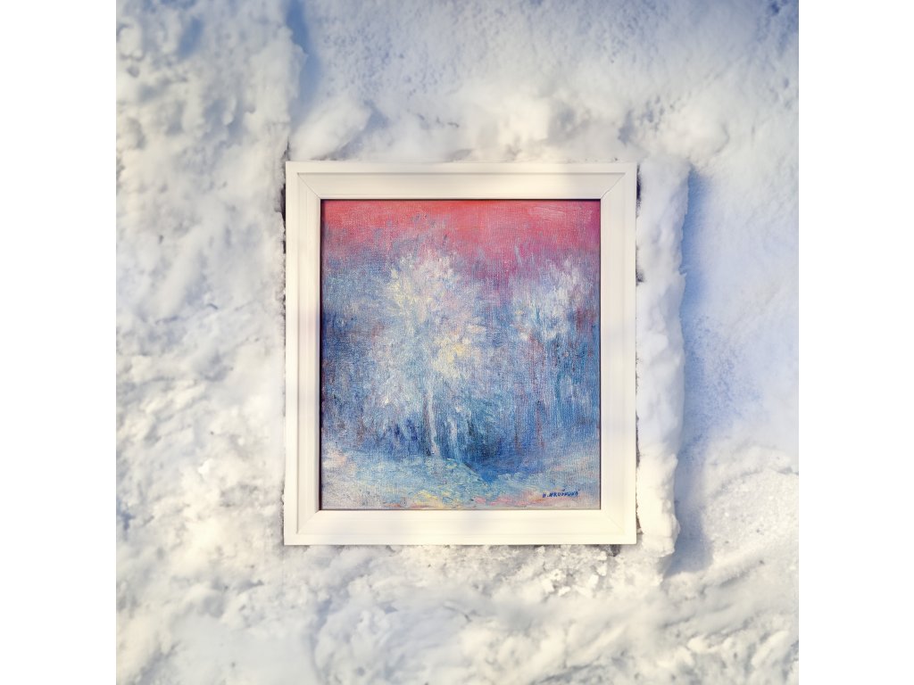 Zimní krajinka zalitá růžovým nebem