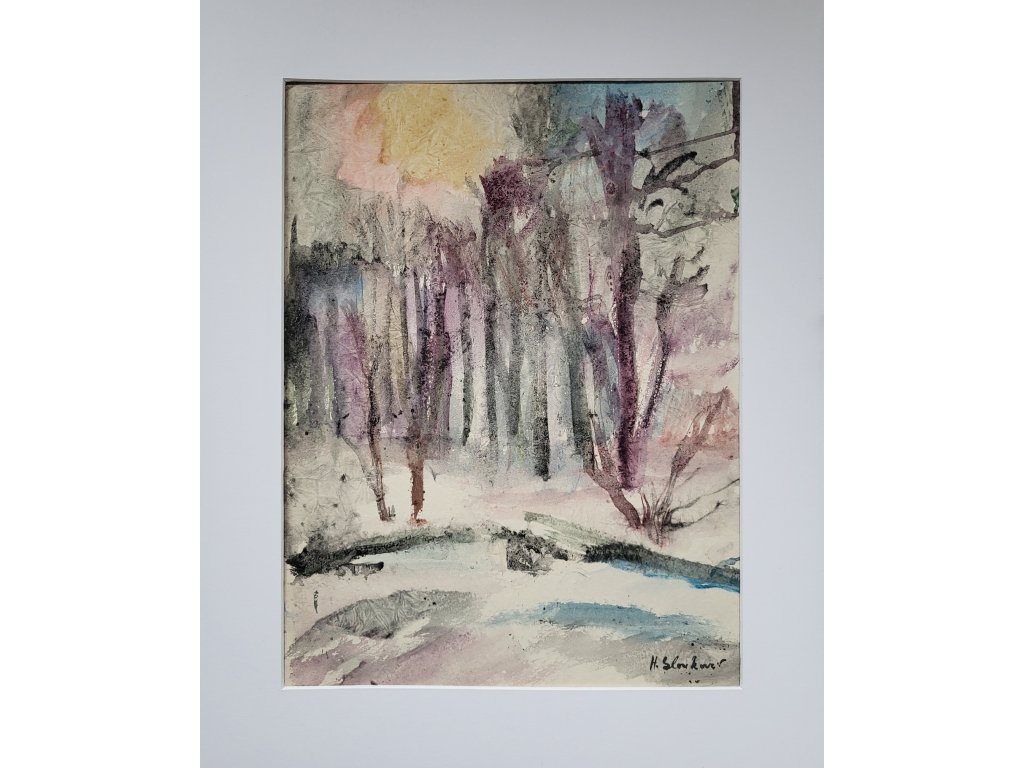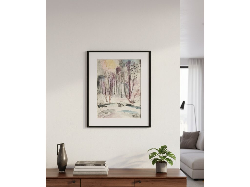Zimní krajinka malovana za mrazu - specifické malby zamrzajici vody v obraze