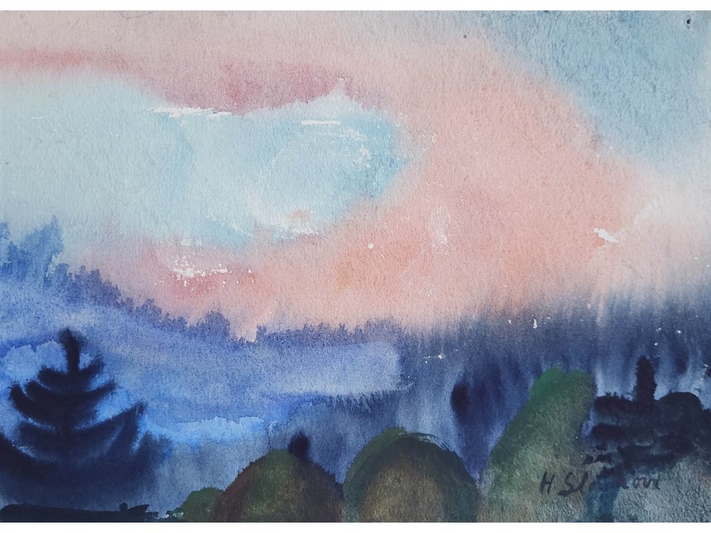 soumrak nad lesy, rozměr A5, při zapaspartování A4