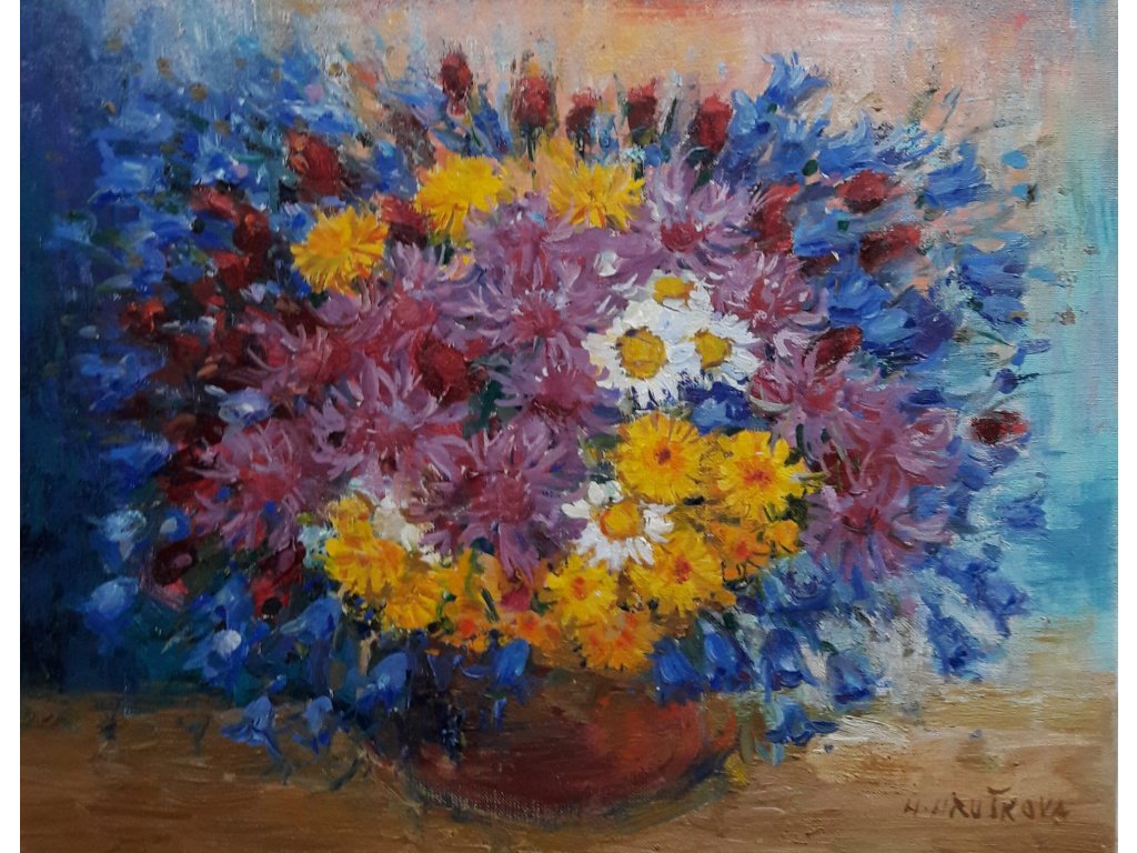 Podzimní kytice s kopretinami, zvonky a pampeliškami
