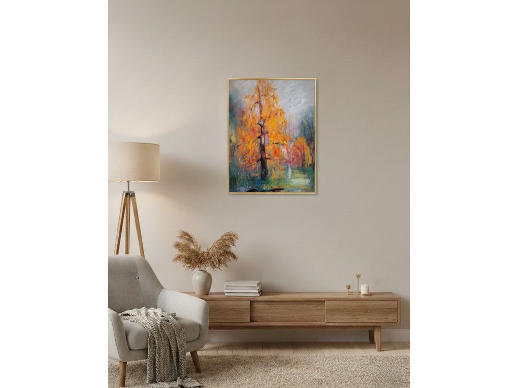 Podzimní pohled na břízu pred naší chalupouolejomalba na plátně